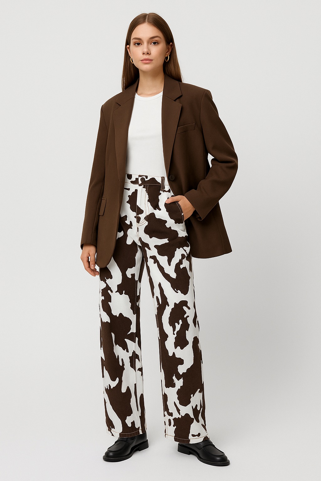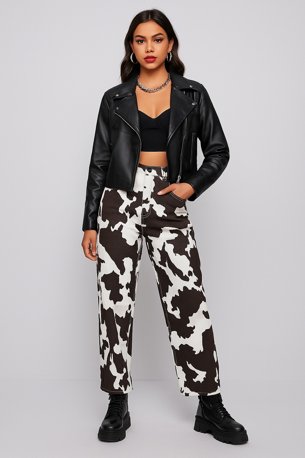 Κατασκευασμένο από ποιοτικό ελαστικό denim, προσφέρει άψογη εφαρμογή και ευκολία στην κίνηση. Το cow σχέδιο του χαρίζει παιχνιδιάρικη και ξεχωριστή αισθητική, κάνοντάς το τέλειο για fashion-forward εμφανίσεις που τραβούν τα βλέμματα.