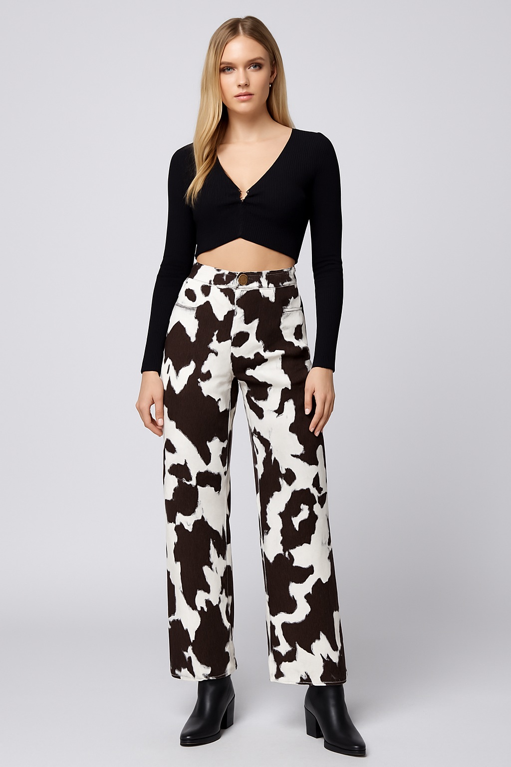 Το γυναικείο ψηλόμεσο τζιν cow style είναι η ιδανική επιλογή για όσες αναζητούν ένα statement κομμάτι που συνδυάζει άνεση και μοντέρνο στυλ. Με το ξεχωριστό print εμπνευσμένο από το cow pattern και τη ψηλή του μέση, αγκαλιάζει τη σιλουέτα και αναδεικνύει τη θηλυκότητα.