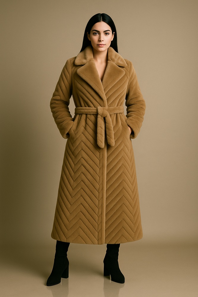 Γυναικεία Μακριά Γούνα με Ανάγλυφες Λεπτομέρειες